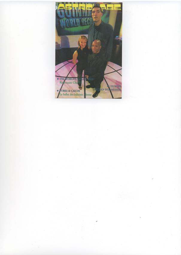 Entre-temps, Astrolabe publie dans son numéro 57 l’histoire de Radhouane Charbib, cet acromégale de 2,35 m, et le Consulat des Seychelles accepte le co-parrainage officiel du géant. Sera-t-il un jour déclaré l’homme le plus grand du monde ?
