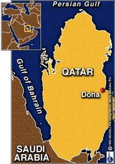 Où sommes-nous donc sur cette presqu’île du bout du monde ? Au large de la mer, dite Golfe Arabique, émerge la péninsule de Qatar, avec à sa racine une frontière avec les Emirats Arabes Unis au sud-est et avec l’Arabie Saoudite au sud-ouest et ayant comme voisin marin... l’île de Bahrein à vingt minutes de vol.